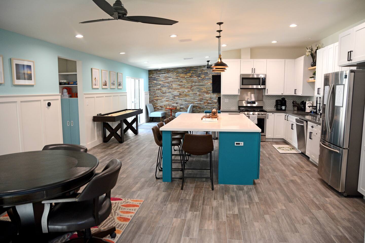 Newly remodeled and expanded in 2020 within walking distance to Mandalay Beach in the peaceful Dunes area. Open floor plan with oversized kitchen island and private backyard with BBQ and ping pong table. Shuffleboard, chess table, poker table will keep you entertained indoors. Take an excursion to the Channel Islands National Park; Main St shops in Ventura; visit Ojai or Santa Barbara nearby, or just enjoy the beach a short walk away!
