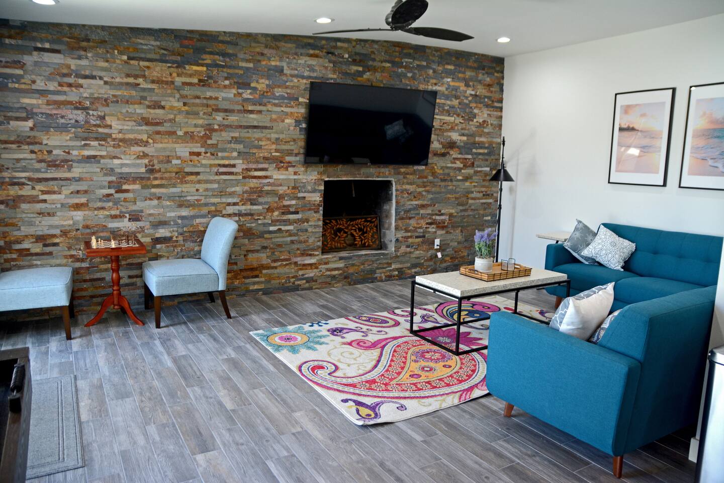 - Indoor fireplace