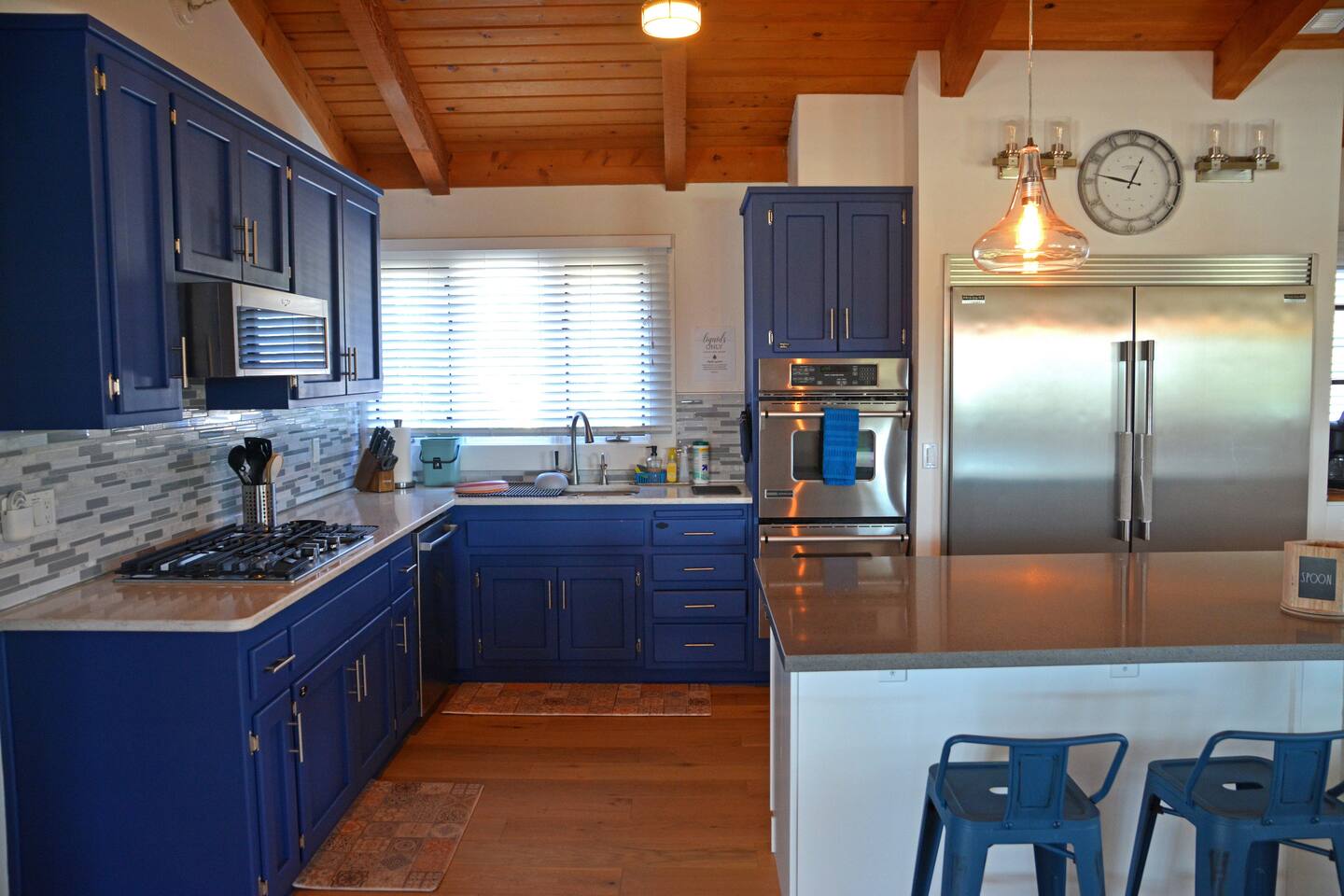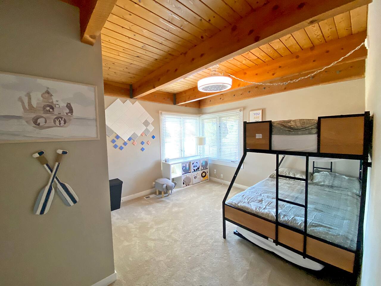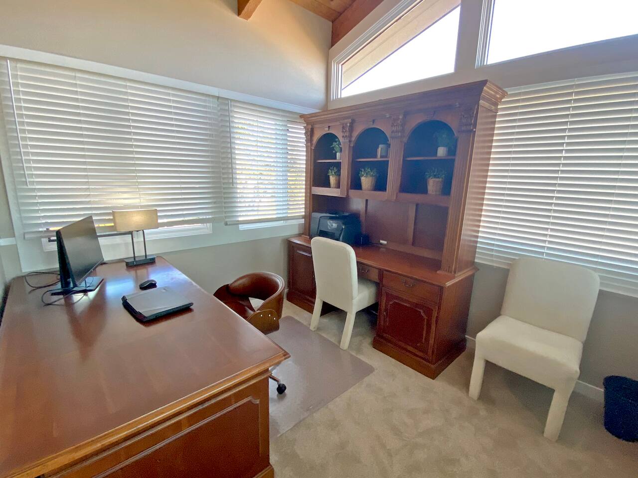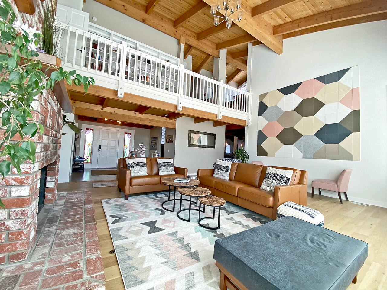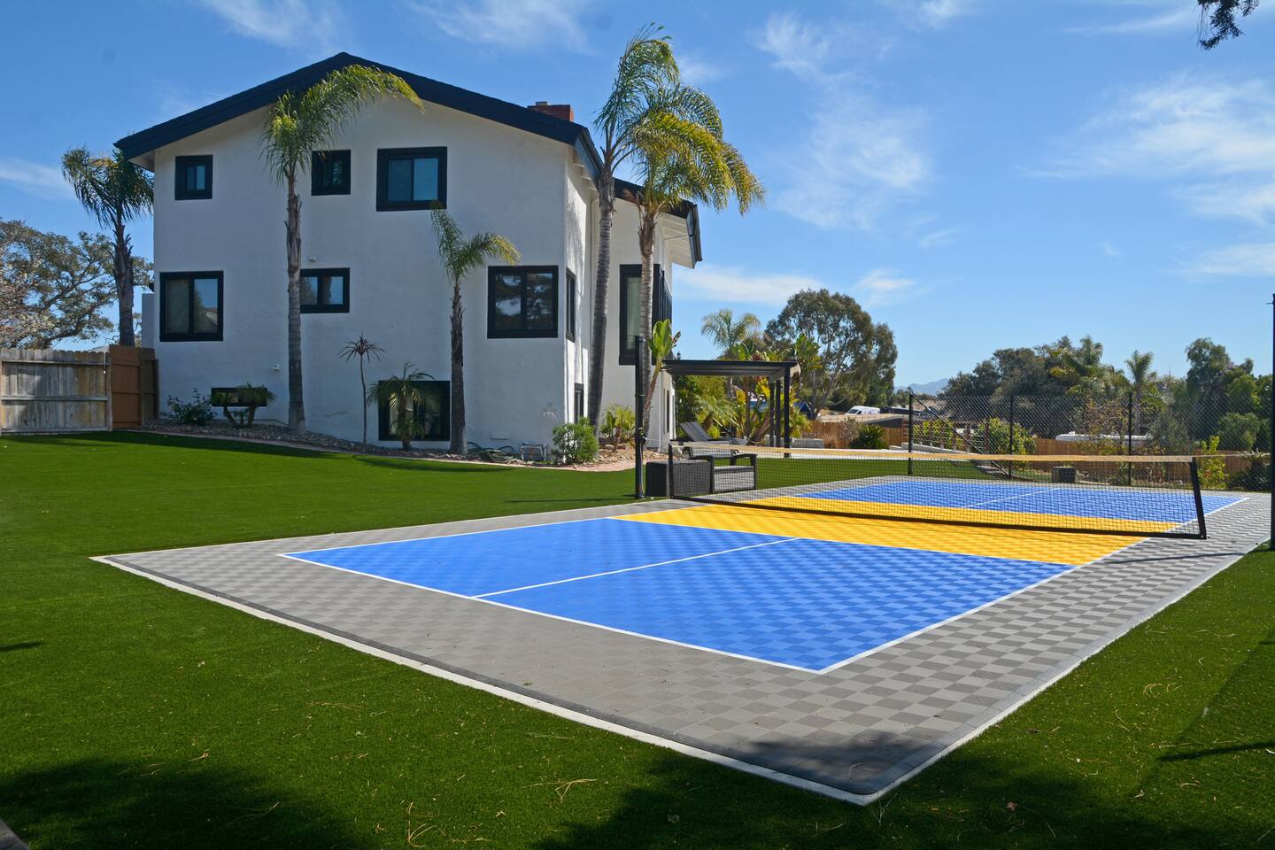 The game room is set up with a pool table, air hockey, foosball table, and board games. The theater room has 6 seats and 85” TV with surround sound and also has an extra day bed with trundle to accommodate larger groups. The office nook with two desks is a perfect place to stay productive. An outdoor covered patio is set up with outdoor kitchen and BBQ to enjoy a meal while watching the sunset. The backyard features 3000 sq feet a newly installed turf with bocce ball court and a sports court for pickle ball or badminton. A fire pit with seating for 8 to warm up in the evenings overlooks the remainder of the yard with established and newly planted fruit trees. Good parking in front of the home for 4 vehicles.