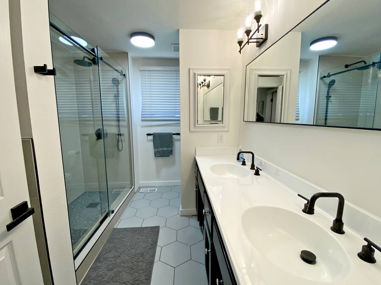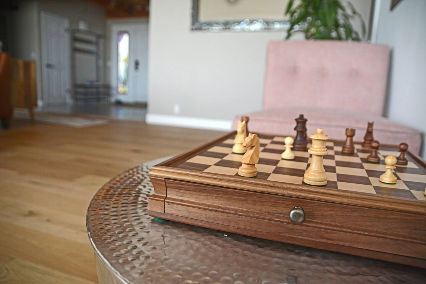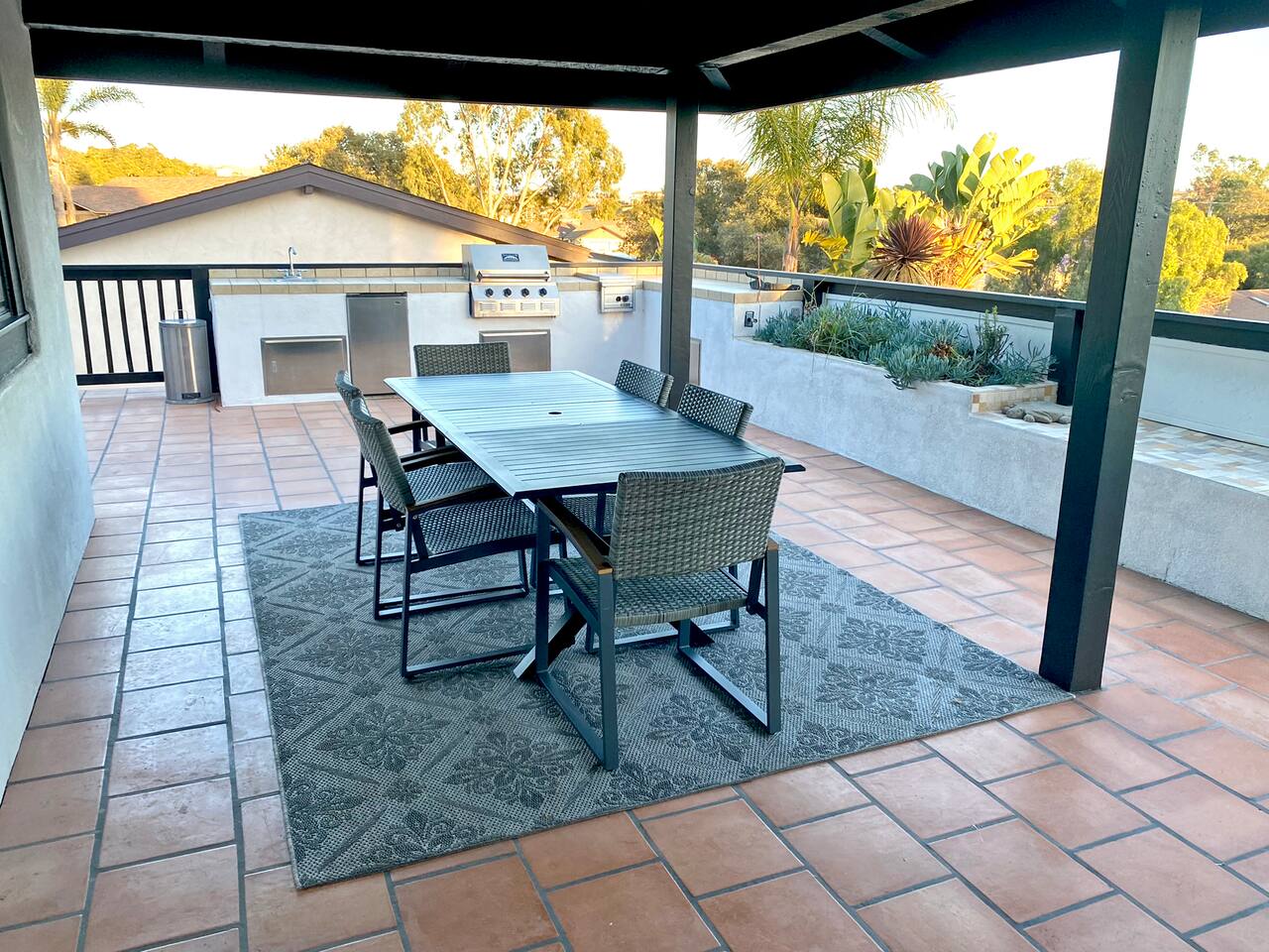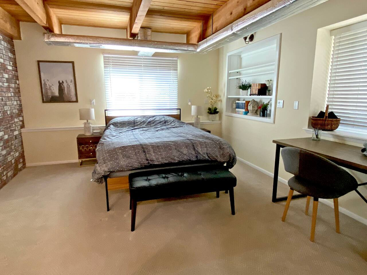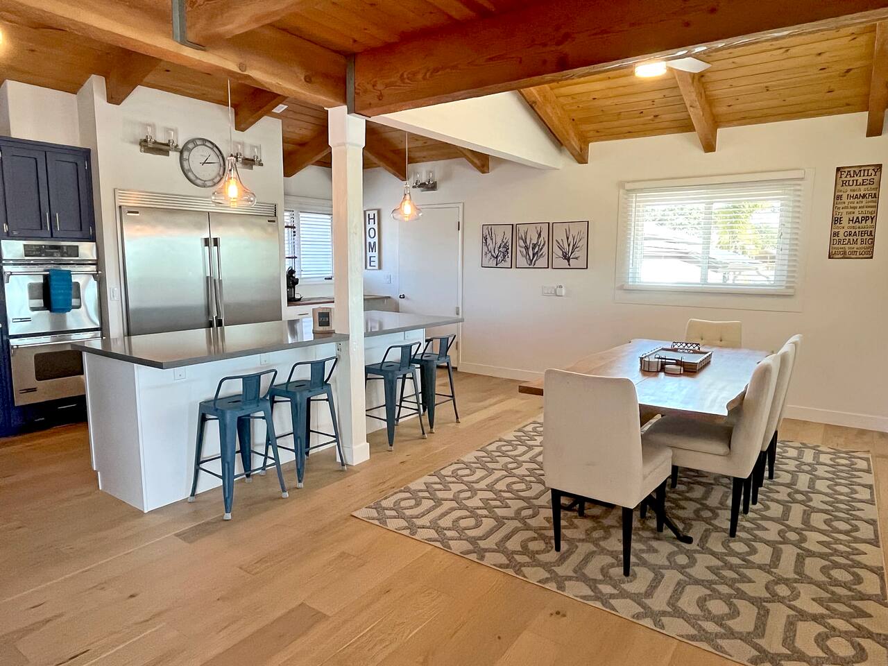 The game room is set up with a pool table, air hockey, foosball table, and board games. The theater room has 6 seats and 85” TV with surround sound and also has an extra day bed with trundle to accommodate larger groups. The office nook with two desks is a perfect place to stay productive. An outdoor covered patio is set up with outdoor kitchen and BBQ to enjoy a meal while watching the sunset. The backyard features 3000 sq feet a newly installed turf with bocce ball court and a sports court for pickle ball or badminton. A fire pit with seating for 8 to warm up in the evenings overlooks the remainder of the yard with established and newly planted fruit trees. Good parking in front of the home for 4 vehicles.