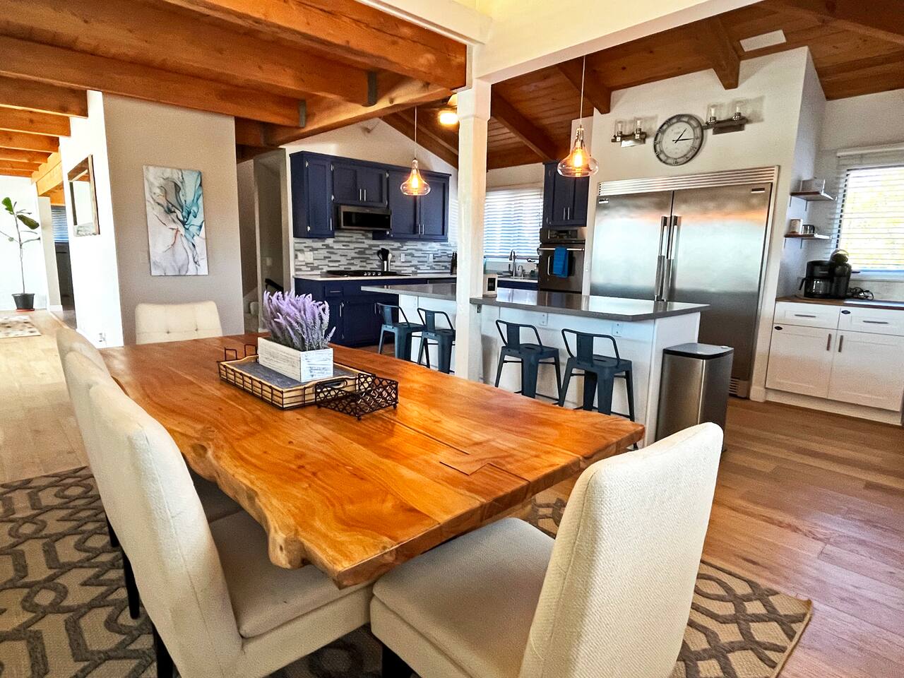 Layout Description: Upper Level: Master Bedroom with King bed, Master Bathroom with shower and bath and office nook. Main Level: Entry, Living Room, Kitchen, Dining Area, 1 bedroom with queen bed, 1 bedroom with bunk bed and trundle, and a bathroom with a shower. Covered patio is located off the dinner area. Lower Level: Game room with seating, movie room with kitchenette & day bed, 1 bedroom with queen bed and bathroom with shower. Behind the home is the entrance to Nipomo regional park. Please note there is some noise from traffic and also noise from occasional baseball or softballs games. Although the home is equipped with central air due to the nature of log home construction the ducting is not super efficient and the home can run a little hot or cold for the upper level including master room. However, the climate is Nipomo is generally in the 70s and extra floor fans are provided if needed. Please note we do require accurate guest counts prior to reservation and do not allow guests outside the original guest count unless prior permission is given. House is on a shared private driveway and we only allow cars to be parked right in front of the house head in. A Nema 14-50 outlet is available for EV charging with a fee. There's enough parking for 4 vehicles. Other vehicles will need to be parked on the public street. Lastly, please be aware our neighbors are particularly sensitive to outdoor noise after 10pm.